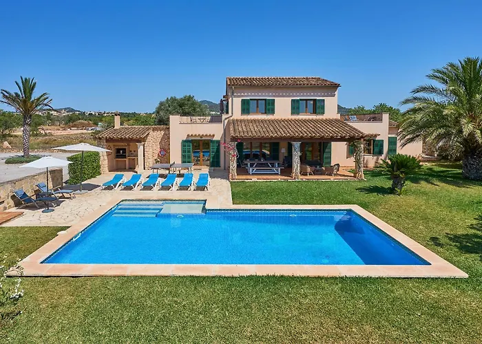 Finca Miralu Villa med 4 sovrum, som ligger 4 km från Parque Natural de Mondragó, har en terrass med utsikt över bergen. Villan med 4 badrum, som har utsikt över en pool, bjuder in gästerna att besöka Calo d'es Pou, som ligger ungefär 2 km bort.